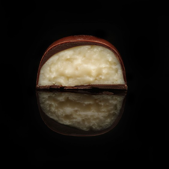 Состав: Корпус: темный шоколад. Начинка: белый шоколад, темный шоколад, сироп кофейный, молоко, фундук тертый.