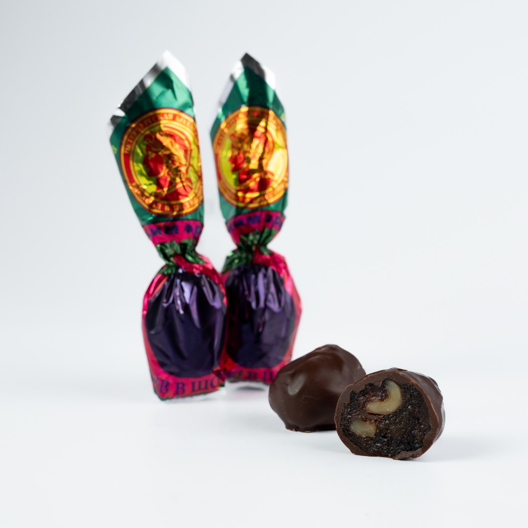 Ассорти из фруктов в настоящем темном шоколаде – кладезь витаминов, энергии и хорошего настроения. А еще это просто вкусно! Индивидуальная упаковка позволяет брать конфеты с собой и делится радостью с близкими. Состав: чернослив в шоколаде (чернослив, темный шоколад,грецкий орех), мандаринка в шоколаде (кумкват, темный шоколад), абрикос в шоколаде (курага, темный шоколад, грецкий орех), финик в шоколаде (финик, темный шоколад); тёмный шоколад (сахар, какао тертое, какао масло, эмульгатор лецитин, ваниль натуральная). Конфеты покрыты тёмным шоколадом, который содержит не менее 55% какао-продуктов. Артикул: 039 Вес (гр.): 200 Углеводы: 57 Жиры: 15.2 Протеин: 3.7 Ккал: 372 Срок год.: 6 мес.