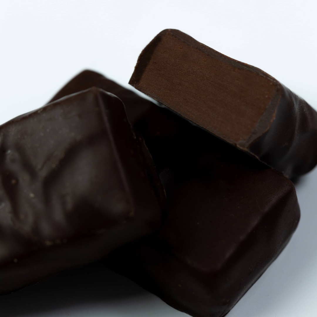 Гармоничное сочетание насыщенного тёмного шоколада и благородного коньяка. Эти конфеты обладают глубоким ароматом и утонченным вкусом, который идеально подойдёт для истинных ценителей десертов с характером. Состав: какао тёртое, сахар, сгущённое молоко (цельное молоко, сахар), какао масло, патока, коньяк 5 звёзд, эмульгатор - лецитин, ваниль; тёмный шоколад (какао тёртое, какао масло, сахар, эмульгатор - лецитин, ваниль). Содержание какао продуктов не менее 55%. Противопоказано при индивидуальной непереносимости: молочного белка, лецитина. Продукт может содержать следы: арахиса, орехов, глютена. Хранить при температуре 18±3ºС и относительной влажности воздуха не более 75%. Беречь от тепла! Система менеджмента безопасности пищевых продуктов фабрики сертифицирована и соответствует требованиям международного стандарта ISO 22000-2019 (HACCP). Артикул: 252 Вес (гр.): 200 Углеводы: 55.6 Жиры: 28.1 Протеин: 5.5 Ккал: 511 Срок год.: 6 мес.
