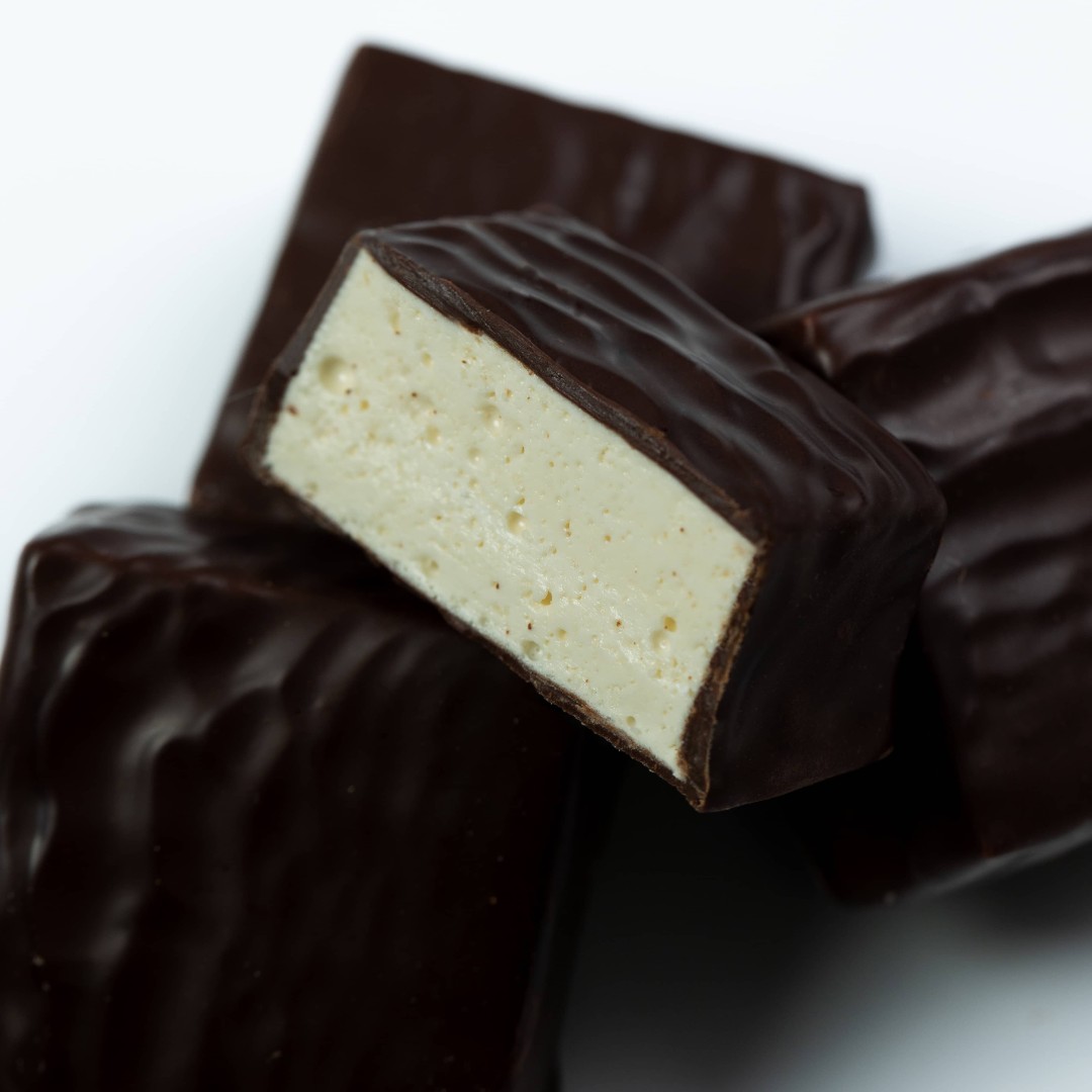 сахар, сливочное масло 82%, патока, сгущённое молоко (цельное молоко, сахар), ваниль, белок яичный сухой, желирующий агент - агар, регулятор кислотности - лимонная кислота; тёмный шоколад (какао тёртое, какао масло, сахар, эмульгатор – лецитин, ваниль). Содержание какао продуктов не менее 55%. Противопоказано при индивидуальной непереносимости: молочного белка, лецитина. Продукт может содержать следы: арахиса, орехов, глютена. Хранить при температуре 18±3ºС и относительной влажности воздуха не более 75%. Беречь от тепла! Система менеджмента безопасности пищевых продуктов фабрики сертифицирована и соответствует требованиям международного стандарта ISO 22000-2019 (HACCP). Артикул: 148 Вес (гр.): 350 Углеводы: 55.5 Жиры: 11.6 Протеин: 2.8 Ккал: 330 Срок год.: 4 мес.