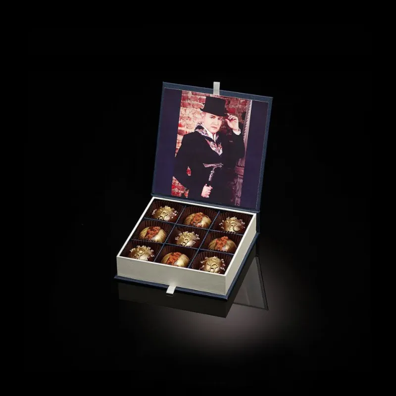 Состав: Каждая конфета в данном наборе была разработана лично Заслуженным артистом РФ, советским и российским певцом, актером, солистом популярных групп «АукцЫон» и «Форум» - Сергеем Рогожиным. В набор входит 9 конфет (5 с солью + 4 с перцем) С перцем чили: шоколад темный, марципан (миндаль), цедра лимона, макадамия, лимончелло, кофе С солью: шоколад молочный, марципан (миндаль), сироп лимона, макадамия, лимончелло