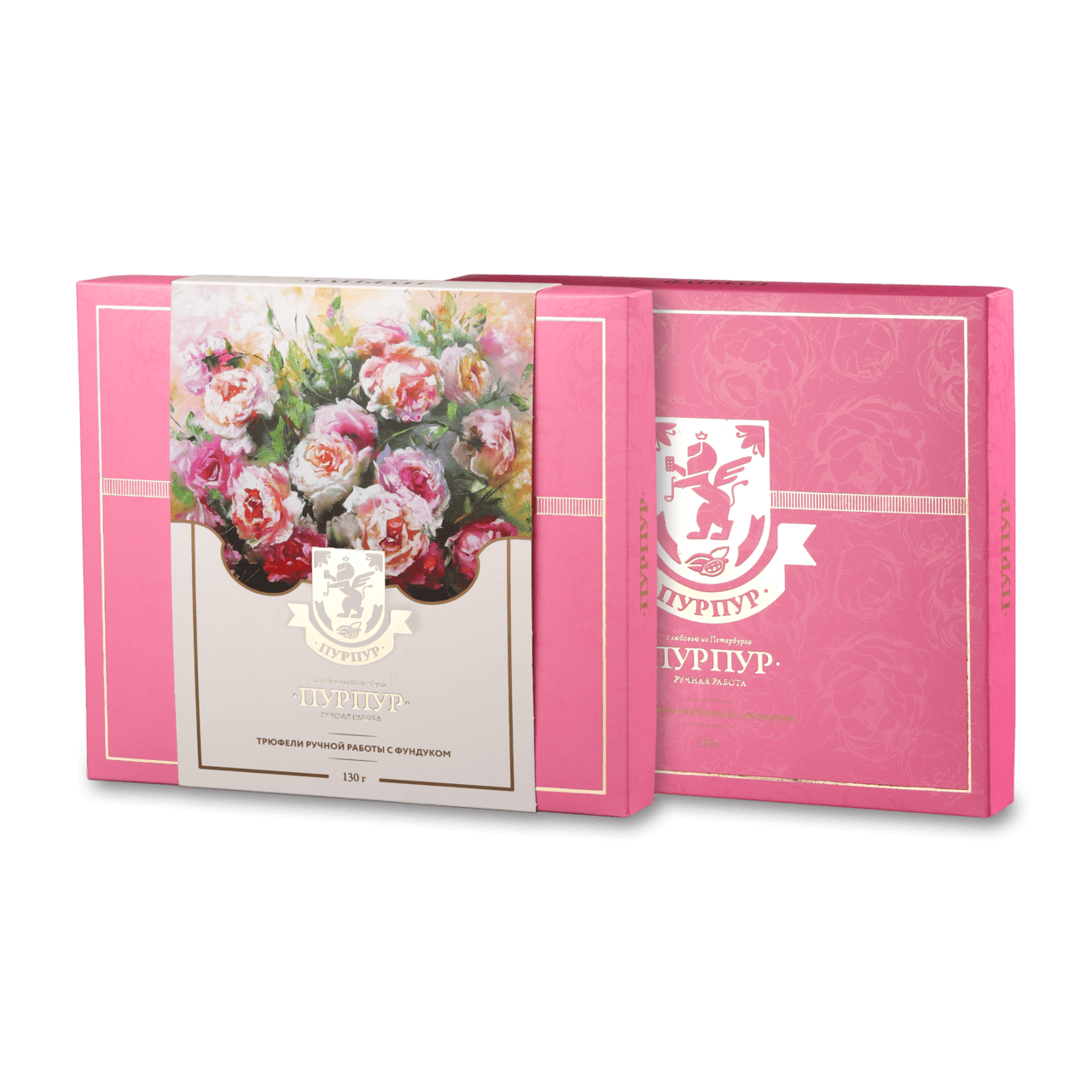 Состав: Шоколад молочный (сахар, какао-масло, сухое молоко, какао тертое, эмульгатор (подсолнечный лецитин), шоколад тёмный (какао тёртое, сахар, какао-масло, эмульгатор (подсолнечный лецитин), ваниль натуральная), орех фундук дробленый, ядро ореха фундука обжаренное в сахаре тёртое, ядро ореха арахиса обжаренное в сахаре тёртое, масло фундука нерафинированное, сухое